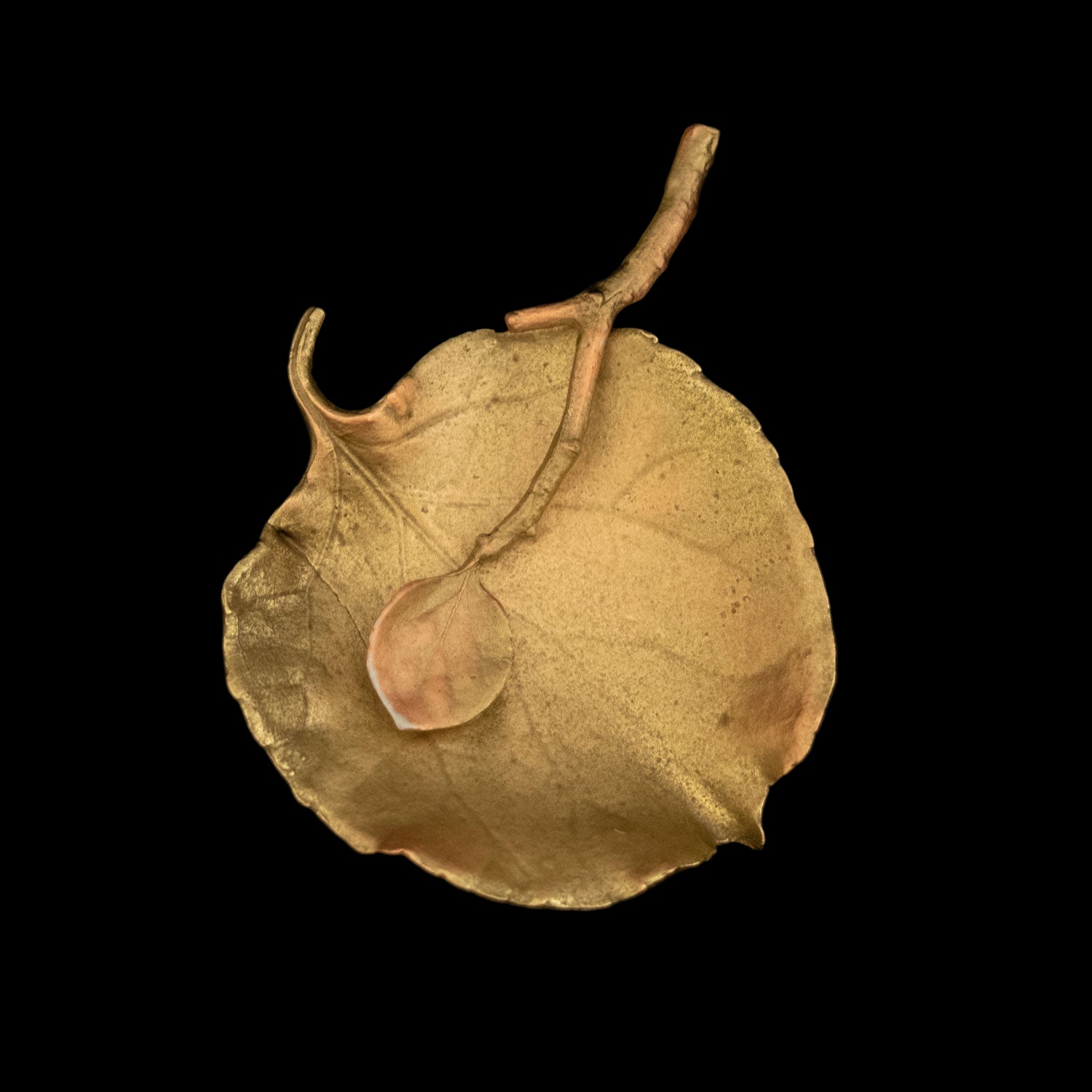 Materials: The Aspen Leaf Salt Dish is cast in pewter with a choice of an antiqued bronze or antiqued silver finish, accented with white freshwater pearls.