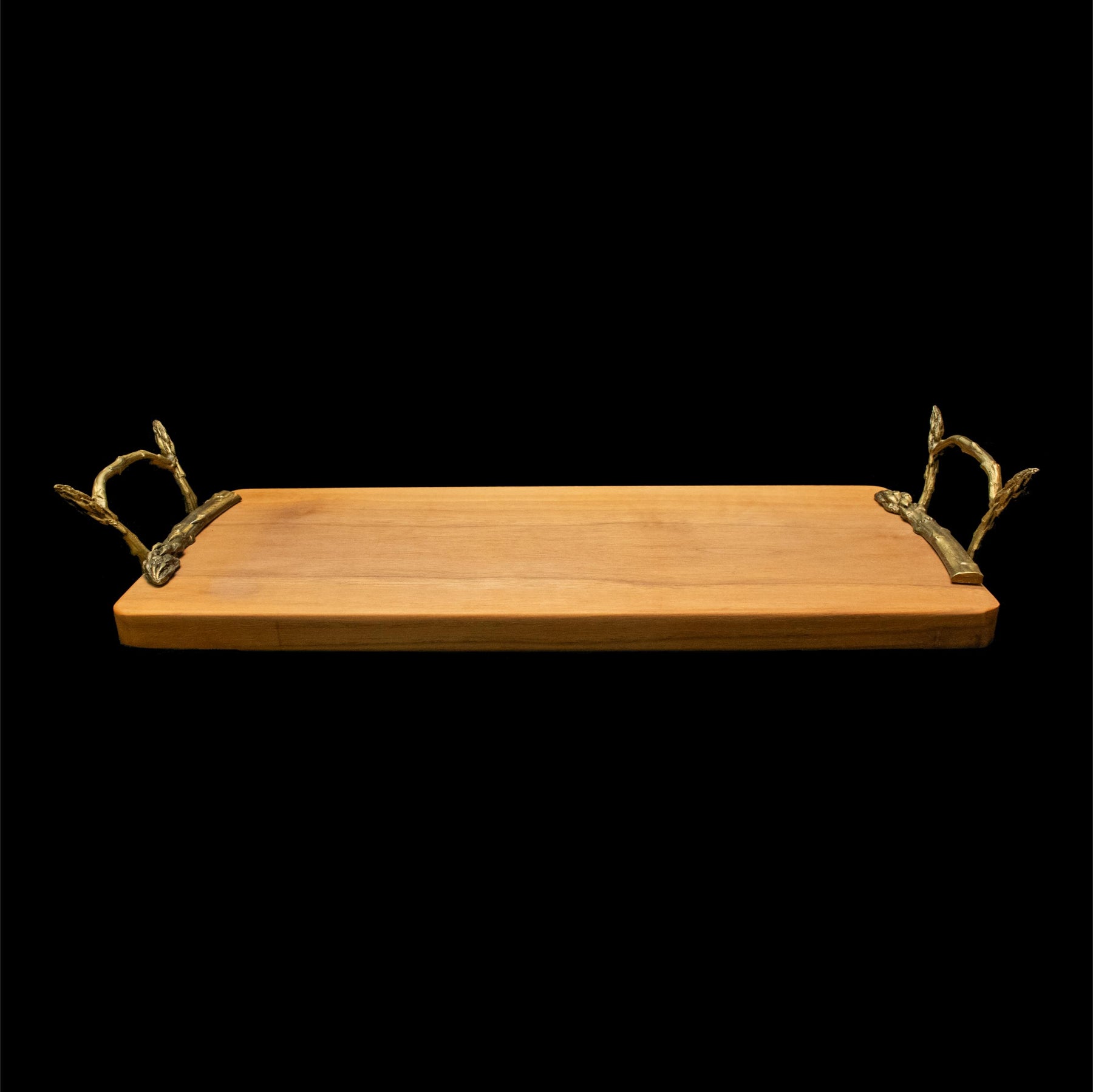 Materials: The Asparagus Tray is a walnut wood board, cast in pewter with an green gold finish.