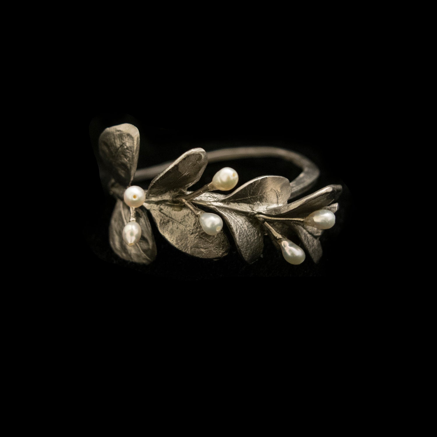 Materials: The Boxwood Napkin Rings are cast in pewter with a choice of an antiqued bronze or antiqued silver finish, accented with white freshwater pearls.