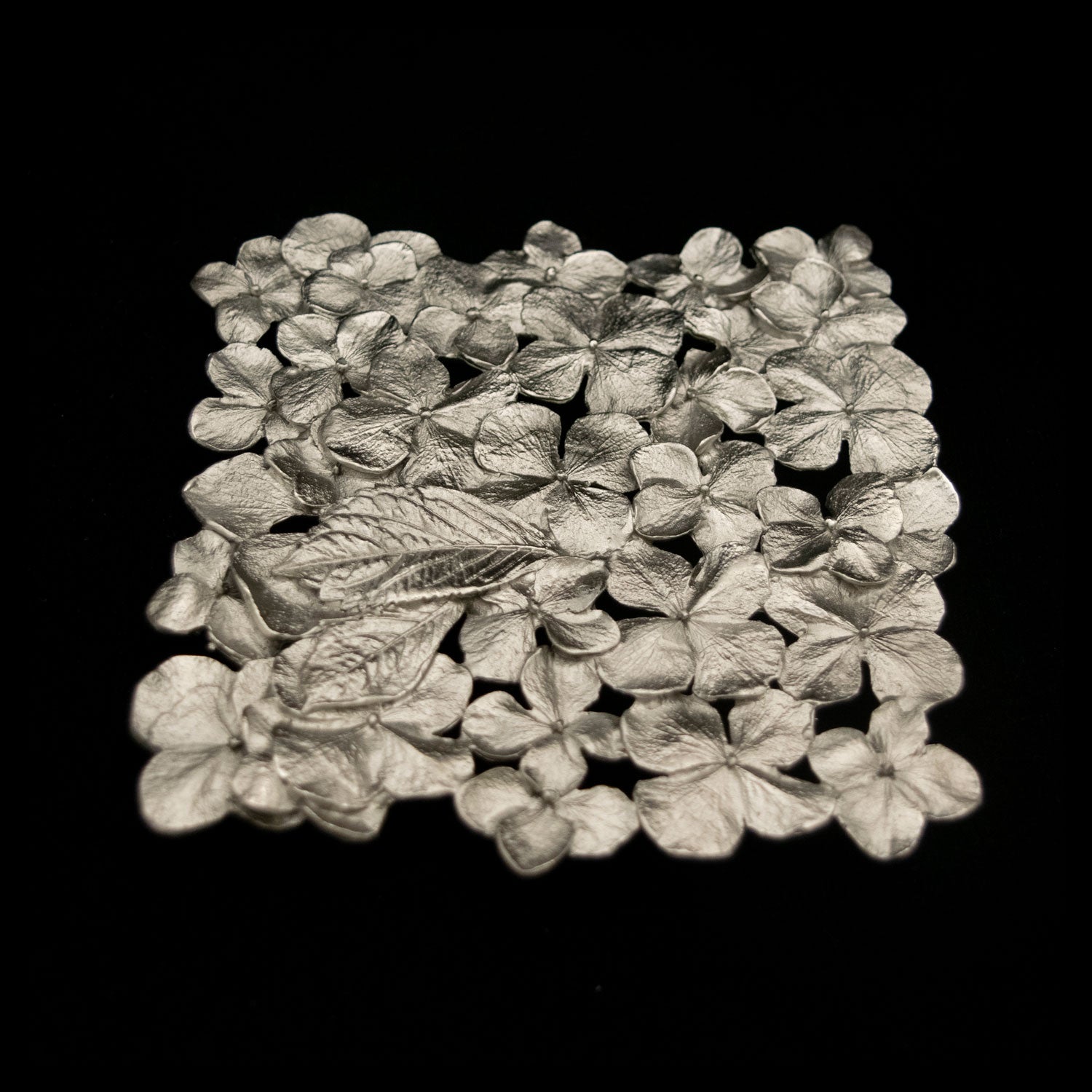 Materials: The Hydrangea Trivet is cast in pewter with a choice of an antiqued bronze or antiqued silver finish.