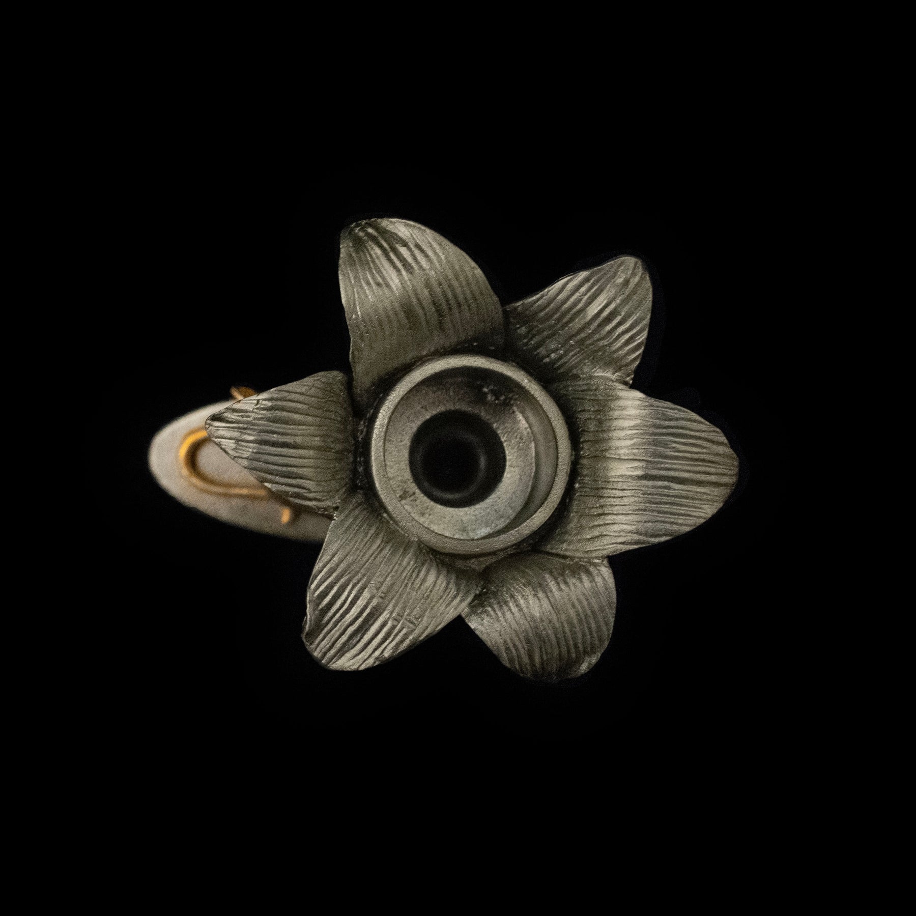Materials: The Mouse & Lily Candlestick is cast in pewter with of an antiqued pewter finish accented with a antiqued bronze.